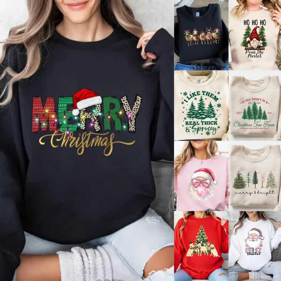 European Style Round Neck Sweatshirt New Christmas Top Women's Fashion Polyester Long Sleeve Princess Style Printed Sweatshirt