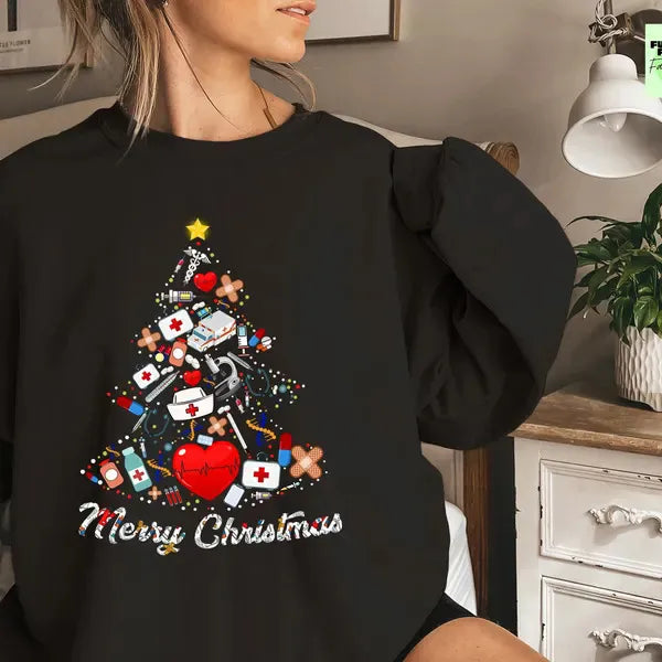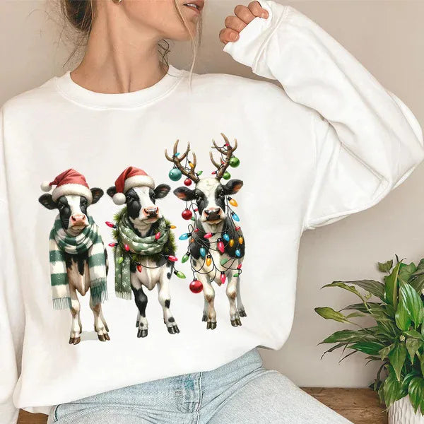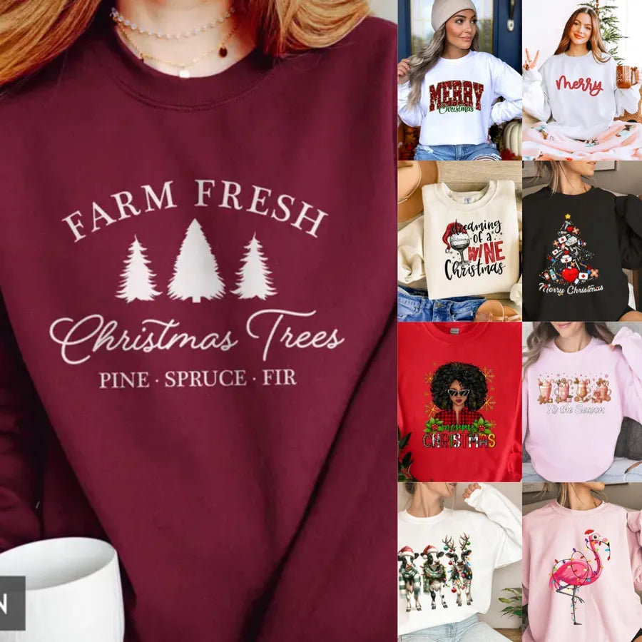 European Style Round Neck Sweatshirt New Christmas Top Women's Fashion Polyester Long Sleeve Princess Style Printed Sweatshirt