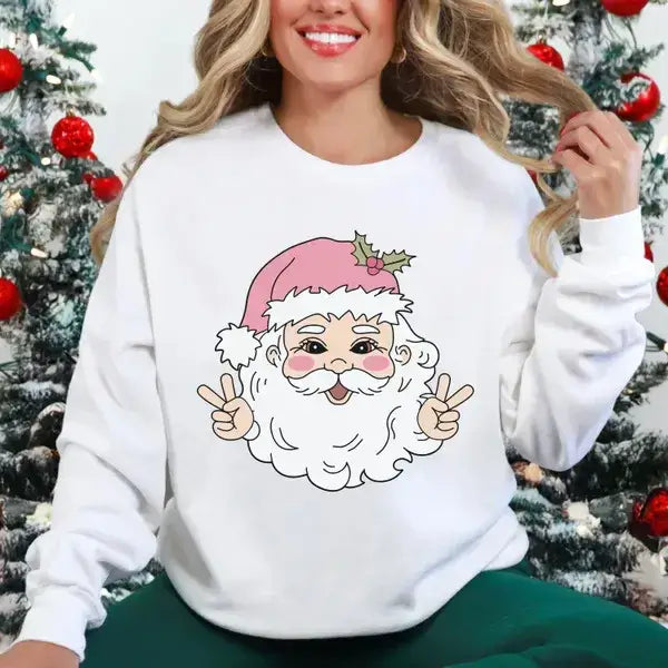 Santa Claus Face Christmas Sweatshirt – White Holiday Top