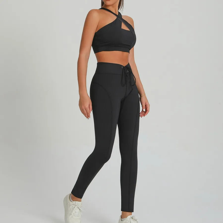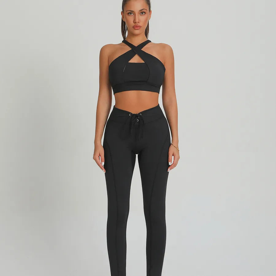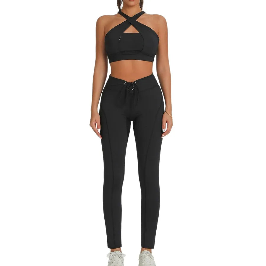 Large Size Ladies' Yoga Suit Cross Back Separate Yoga Pants Style Long Pants Sleeveless Women's Wear