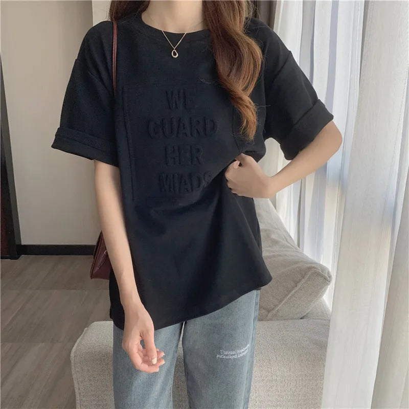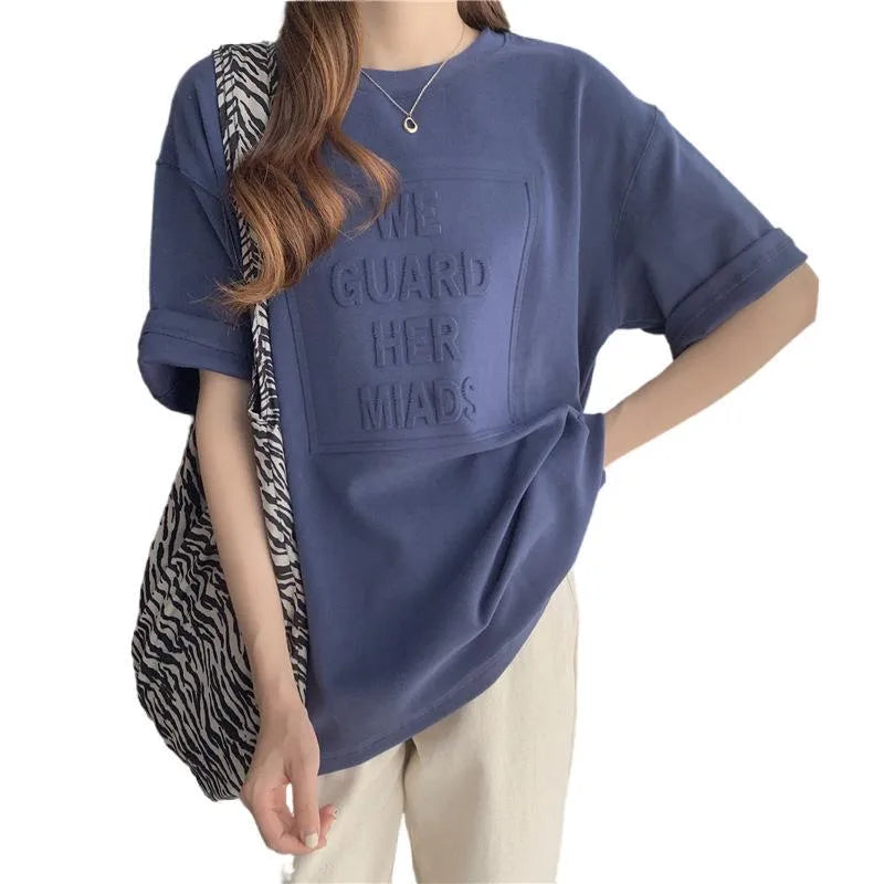 Loose Casual Summer Top Women's Half Sleeve T-Shirt New Style Short Sleeve Letter Print Base Shirt Comfortable Cotton Blend