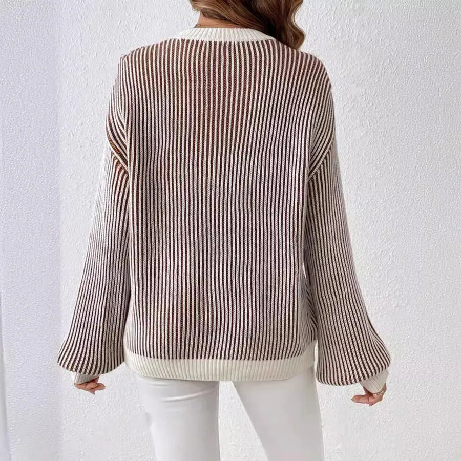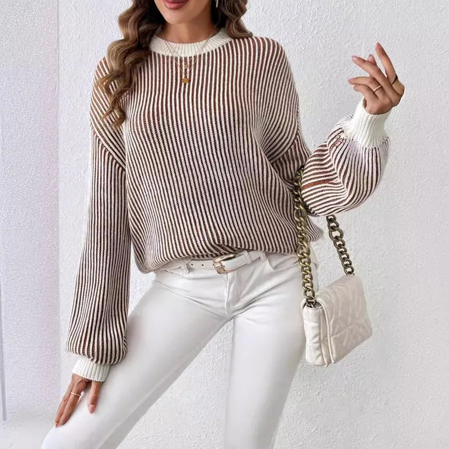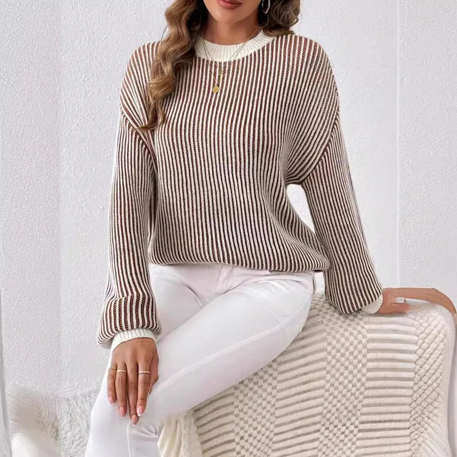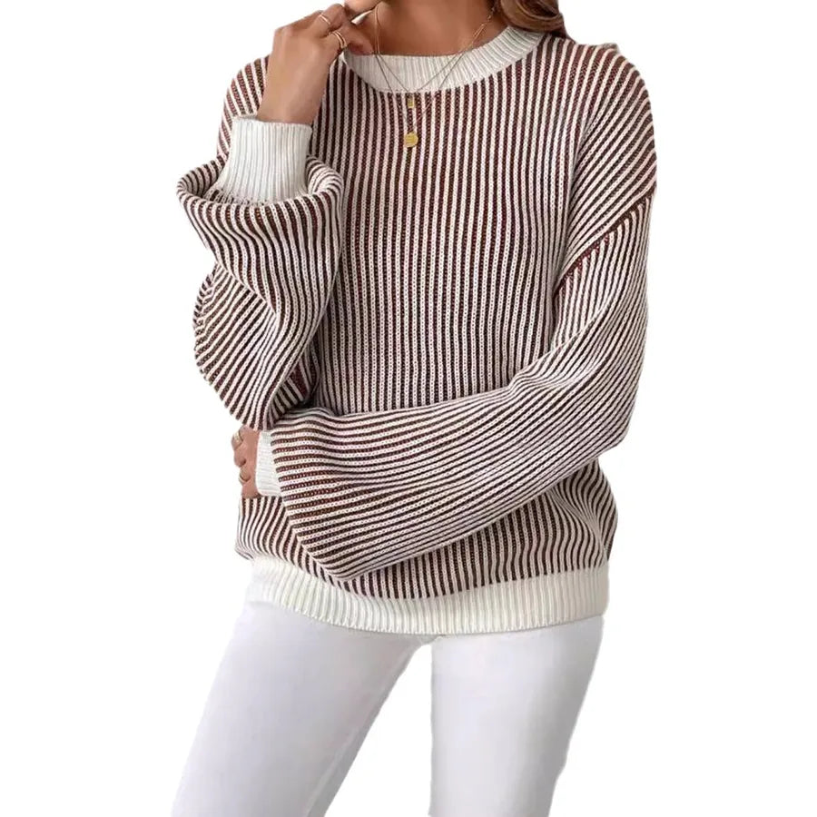 Loose Long Sleeve Round Neck Knitted Sweater Women's Fashionable New Style Autumn Winter Polyester Blend Commute Friendly