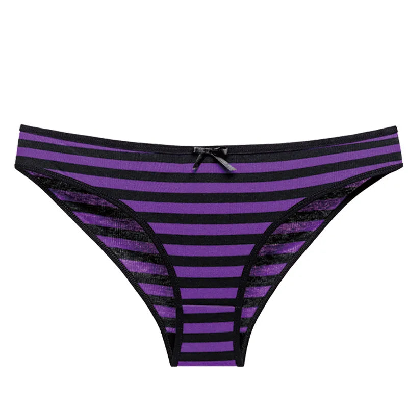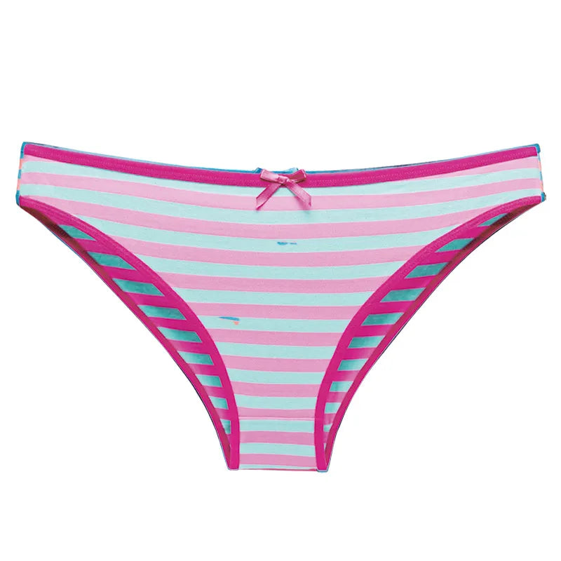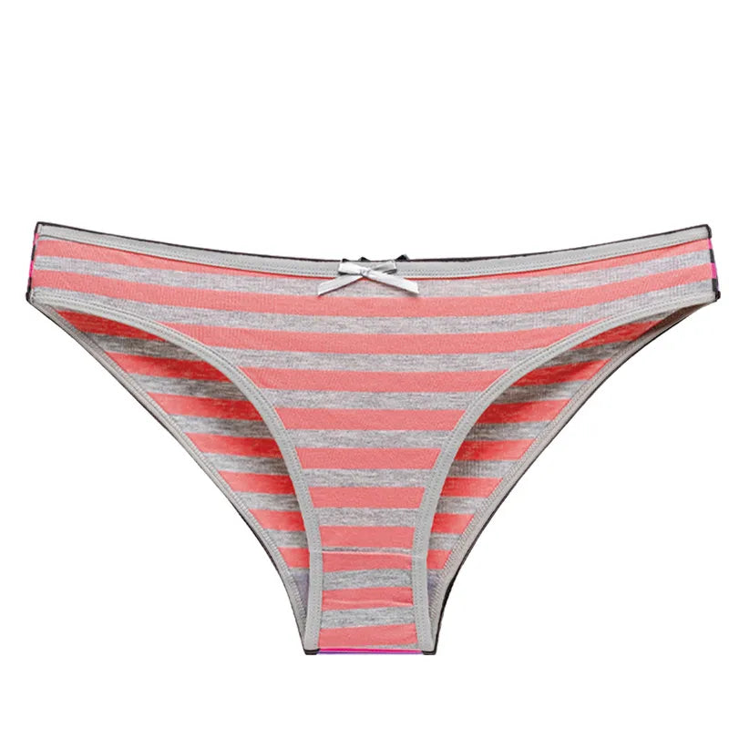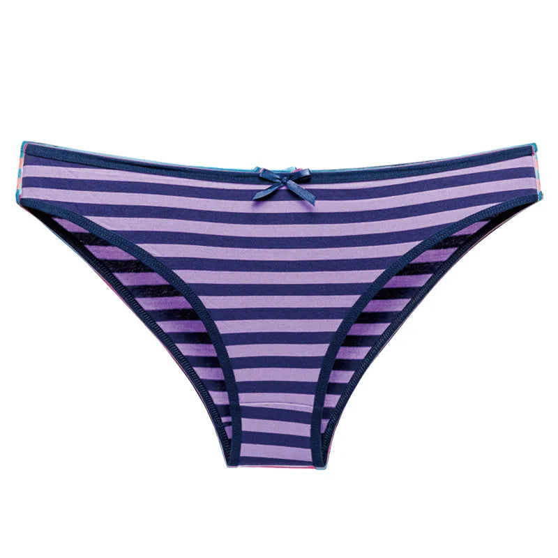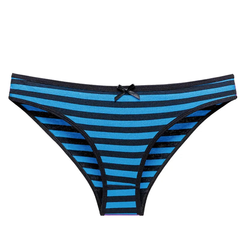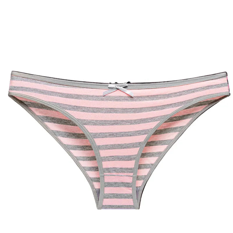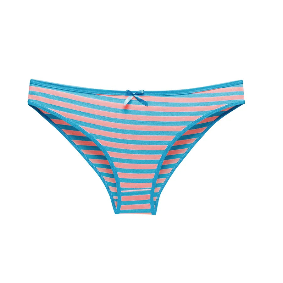 Low Waist Ladies Triangle Panties Breathable Comfortable Striped Design Lace Edge Underwear Polyester Fabric Suitable For All Seasons