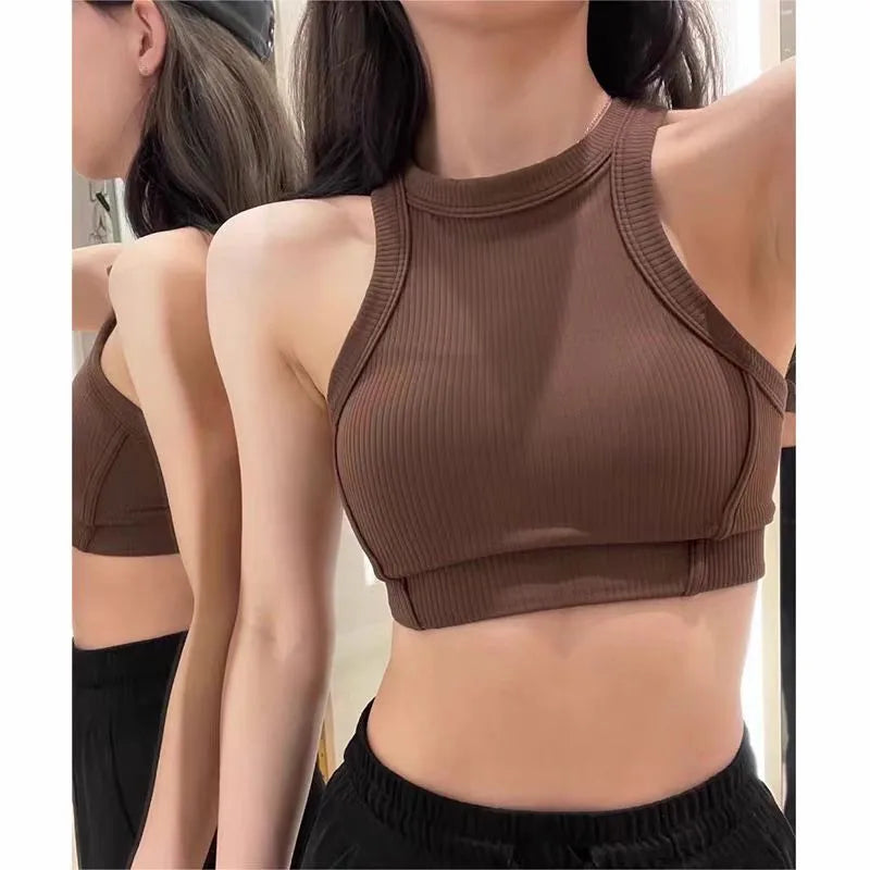 Lu Style Sporty Tank Top Women's Vest Style Yoga Quick Dry Fitness Bra Running Shockproof Yoga Clothes Nylon Fabric Simple Design