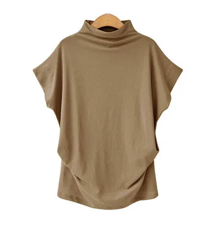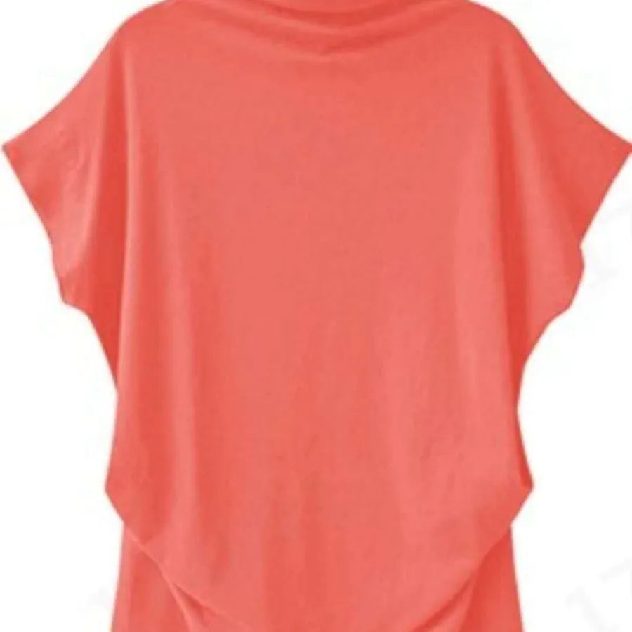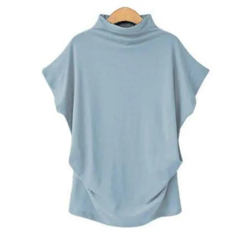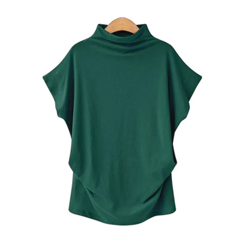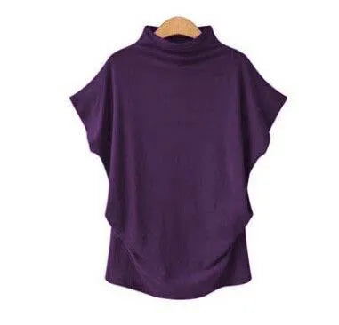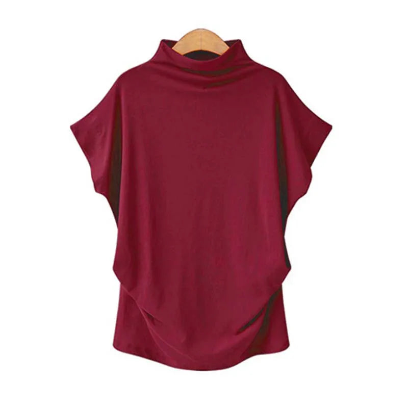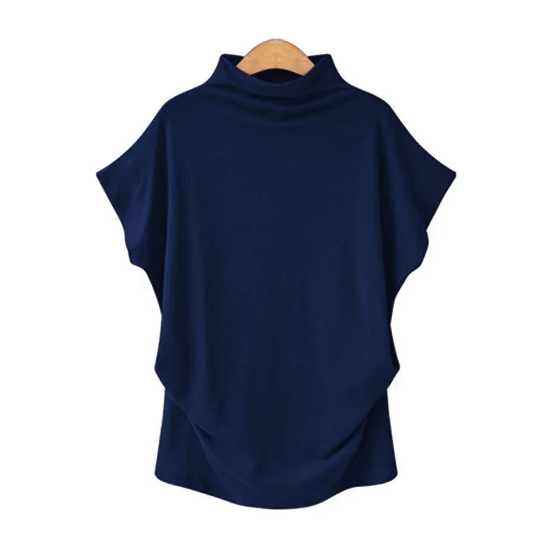 Plus Size Women's High Collar Short Sleeve T-Shirt Style Solid Color Cotton Blend Spandex Commute Fashion
