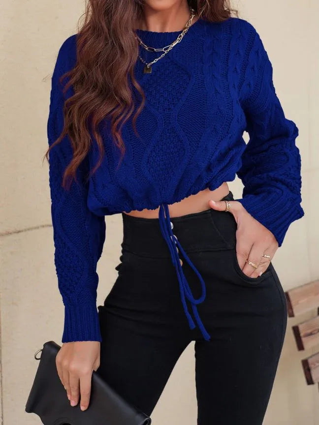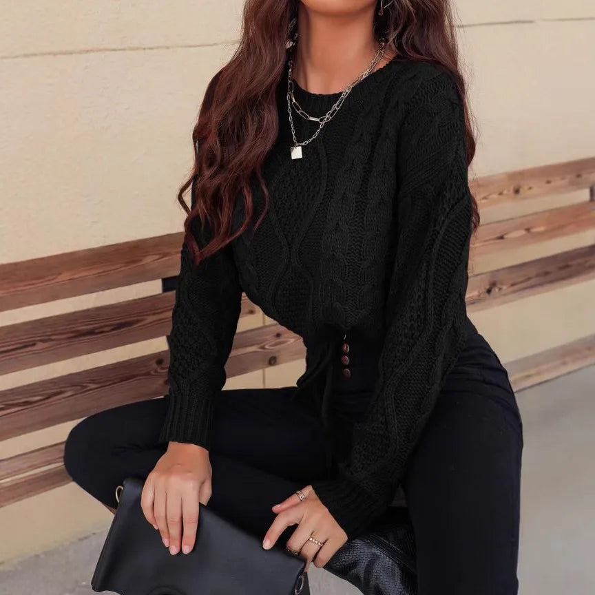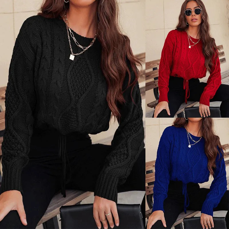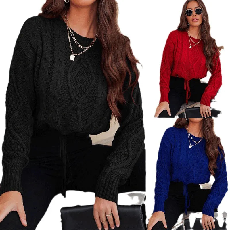 R&D Short Lantern Sleeve Round Neck Ladies Sweater Pure Color Autumn Winter New Style Casual Loose Fit Comfortable Knitwear