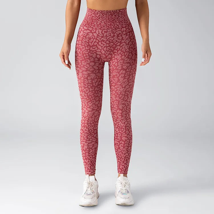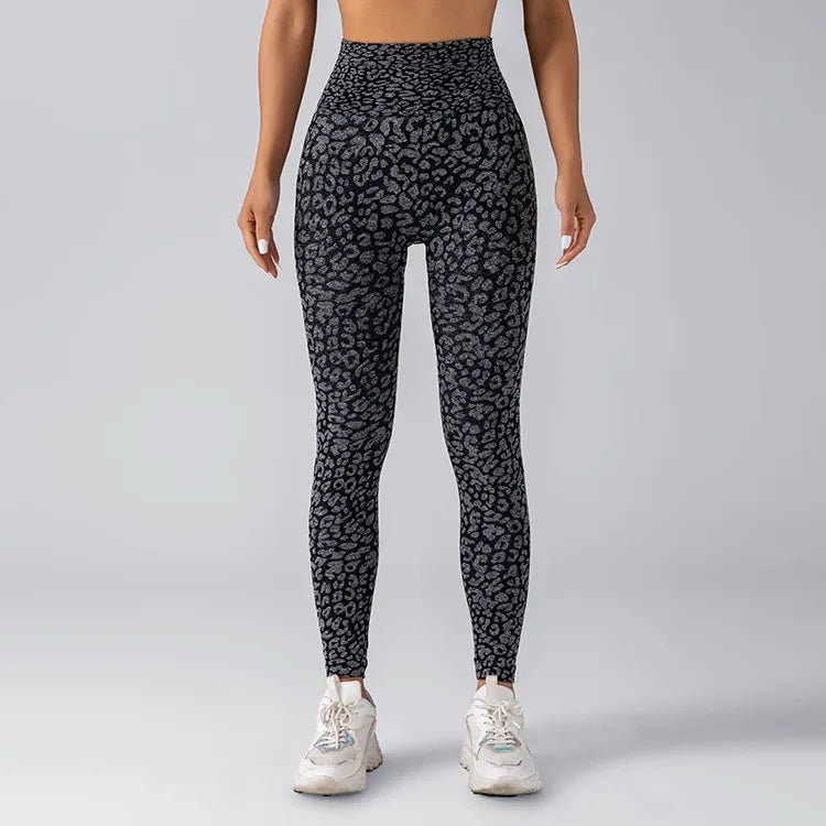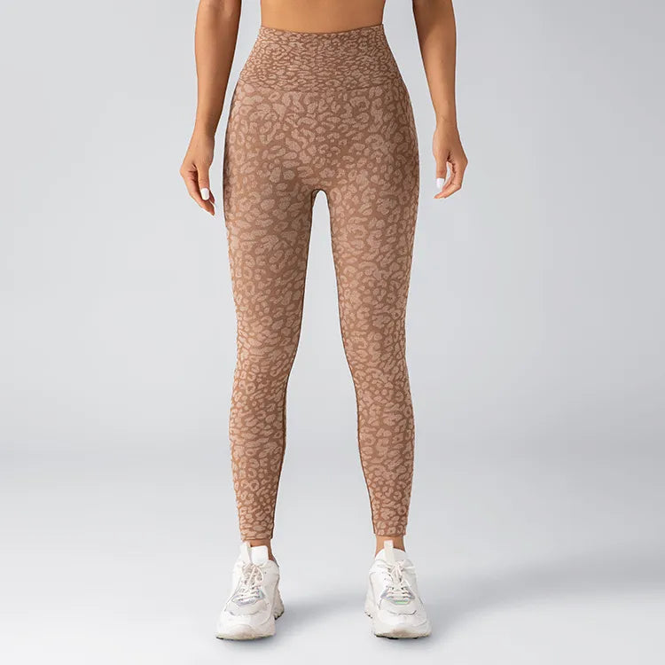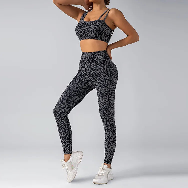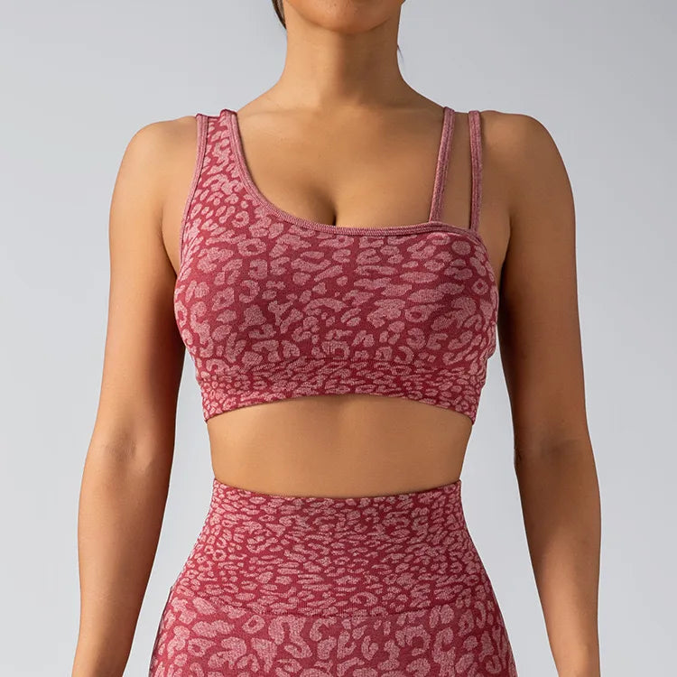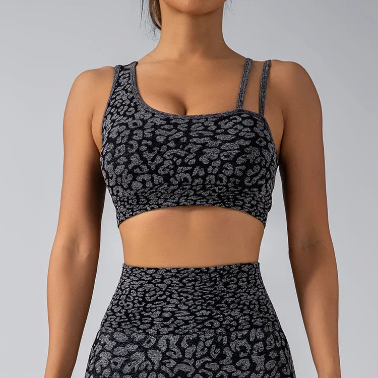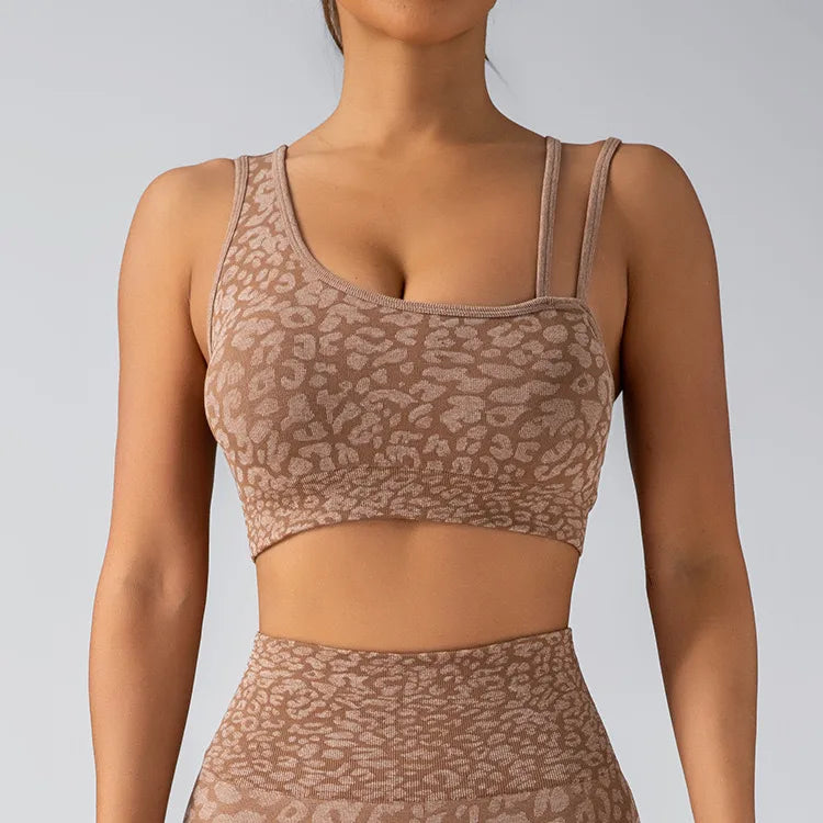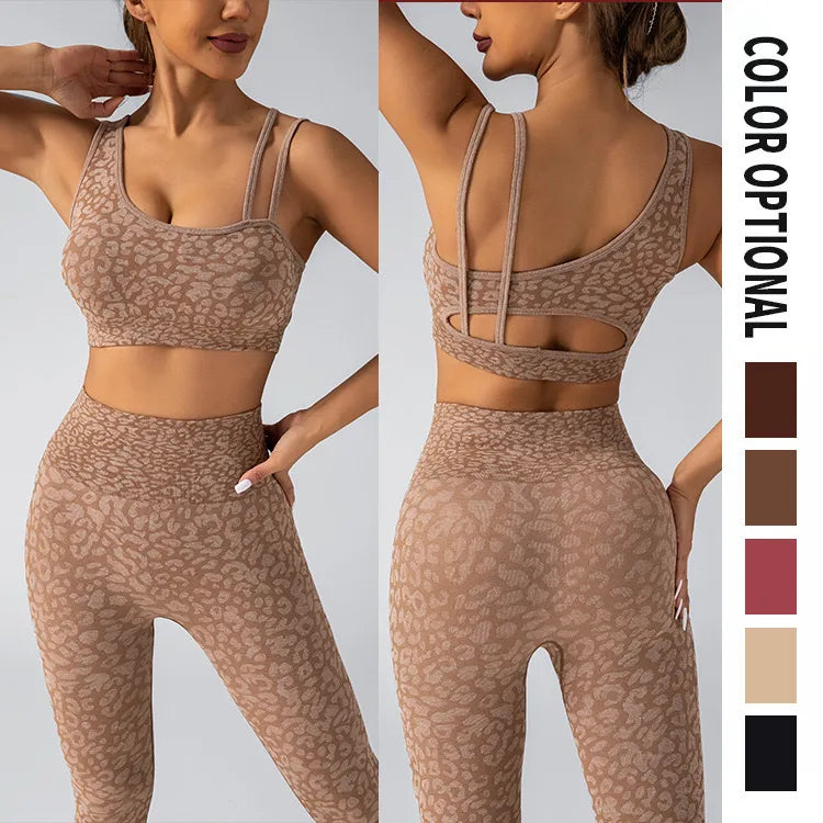 Seamless Knitted Leopard Print Yoga Pants And Vest Set With Strap And Chest Pad For Women Long Sleeveless Nylon Fabric