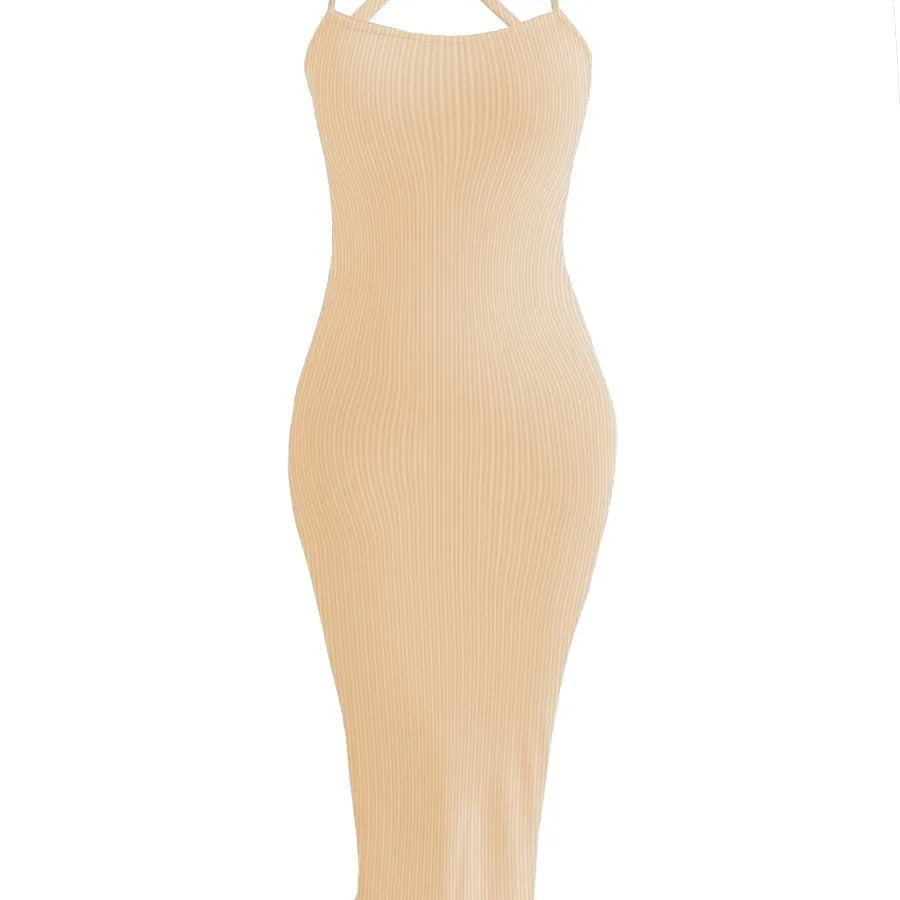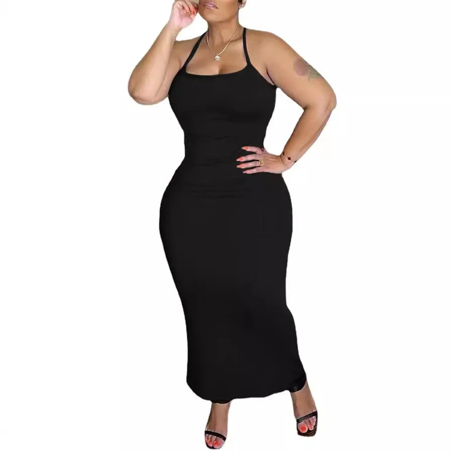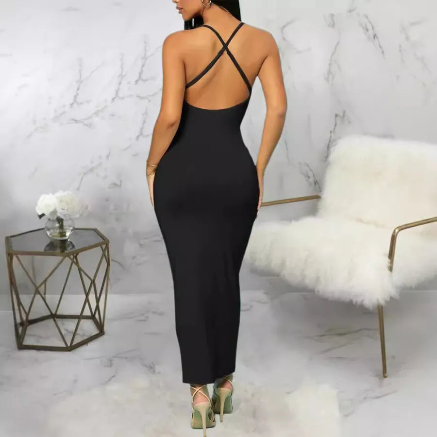 Sexy Strapless Bodycon Long Dress Women's Pure Color Versatile Dress Round Neckline Backless A-Line Skirt Polyester Fiber