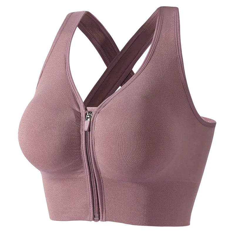 Simple Style Solid Color Nylon Sponge Zipper Active Tops Bralette