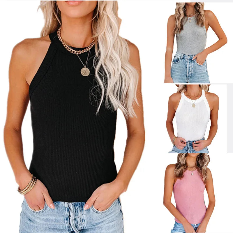 Spring Summer Solid Color Versatile Ribbed Vest Round Neck Base Layer Inner Wear Outer Wear T-Shirt Women's Bestseller