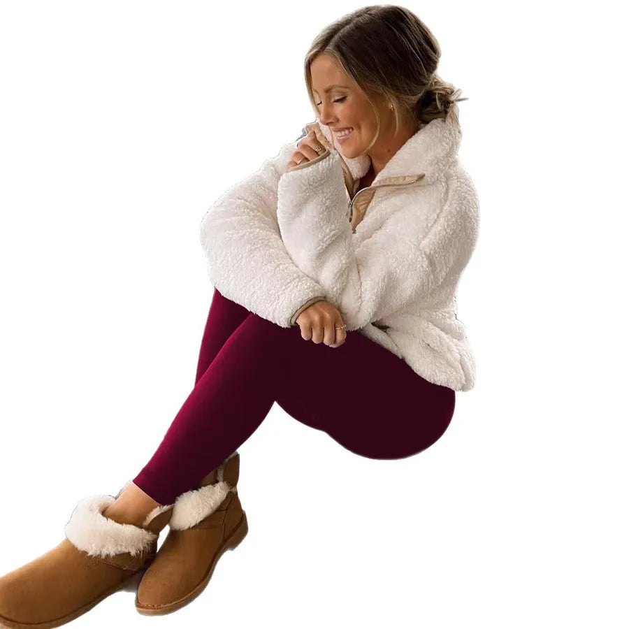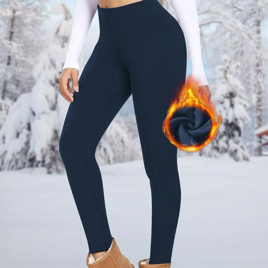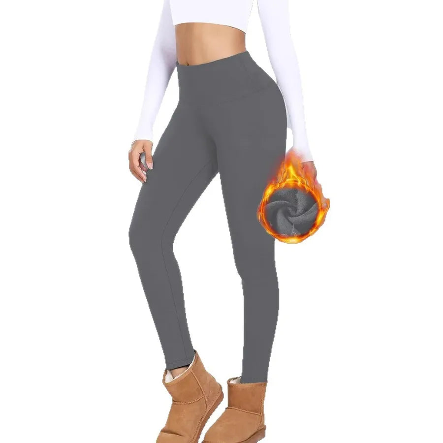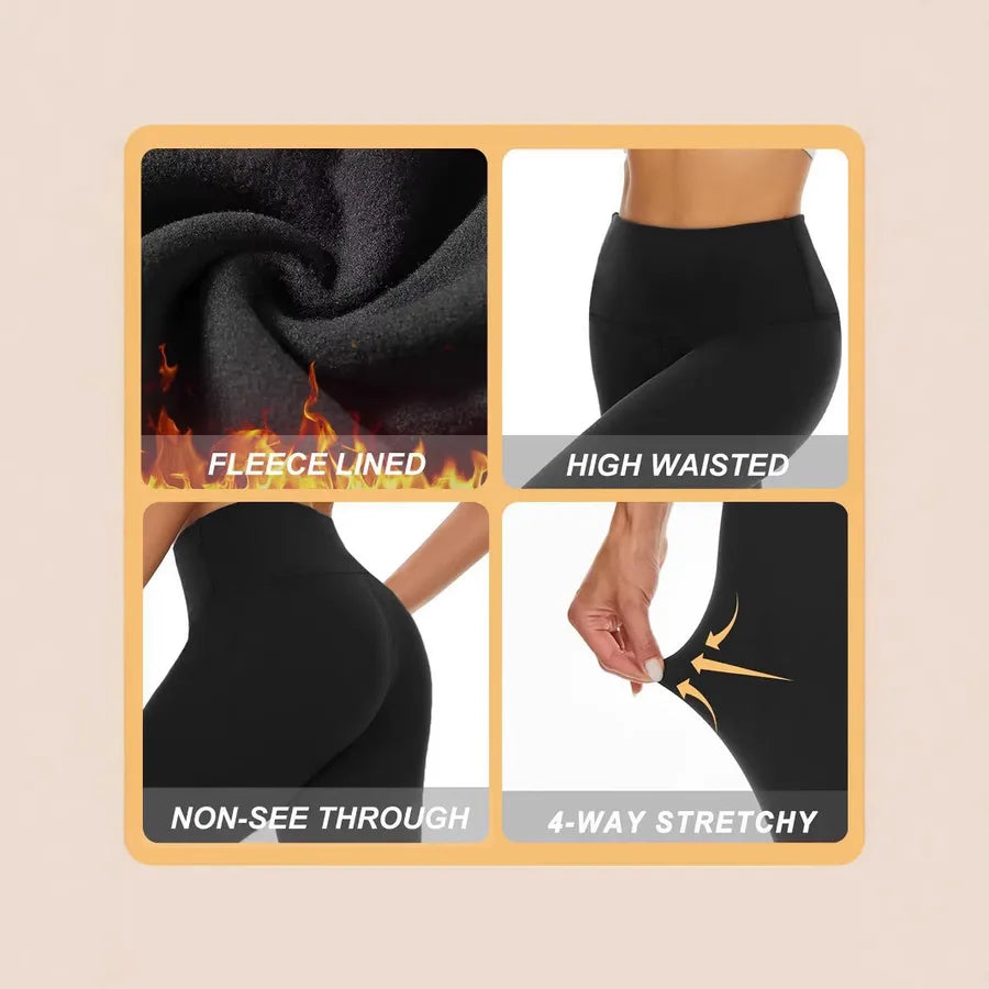 Women's High-Waist Fleece Lined Yoga Pants Winter Warm Base Layer High Elastic Slimming Casual Sports Pants