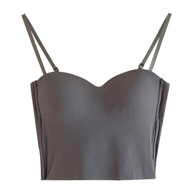 Women's Summer Camisole Vest With Chest Pad Inner And Outer Wear Beautiful Back Bra Integrated Underwear White Strapless Top